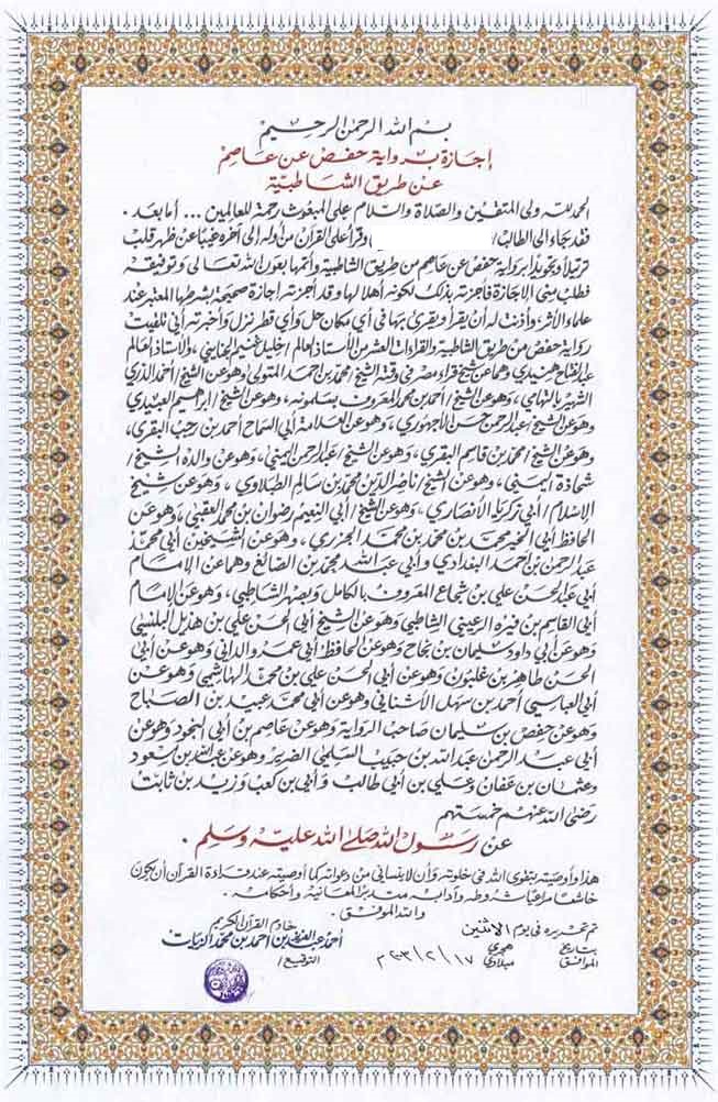 إجازة في حفظ القران بالسند المتصل Prints Quran Words
