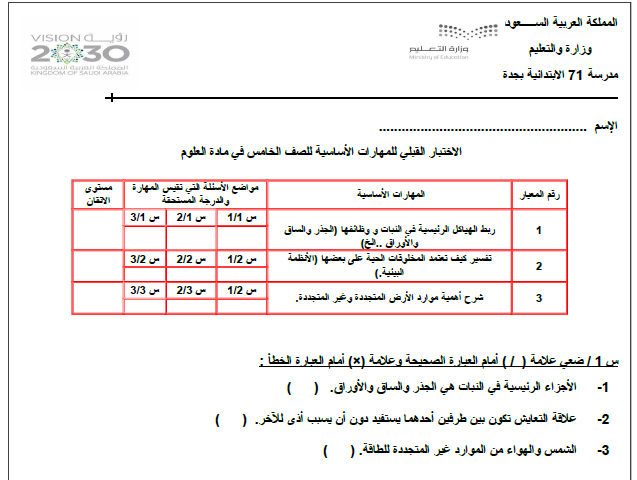 أوراق عمل اختبار قبلي علوم الصف الخامس إبتدائي جديد 1441 هـ 2020 م نموذجين Word Pdf منتدى التعليم توزيع وتحضير المواد الدراسية