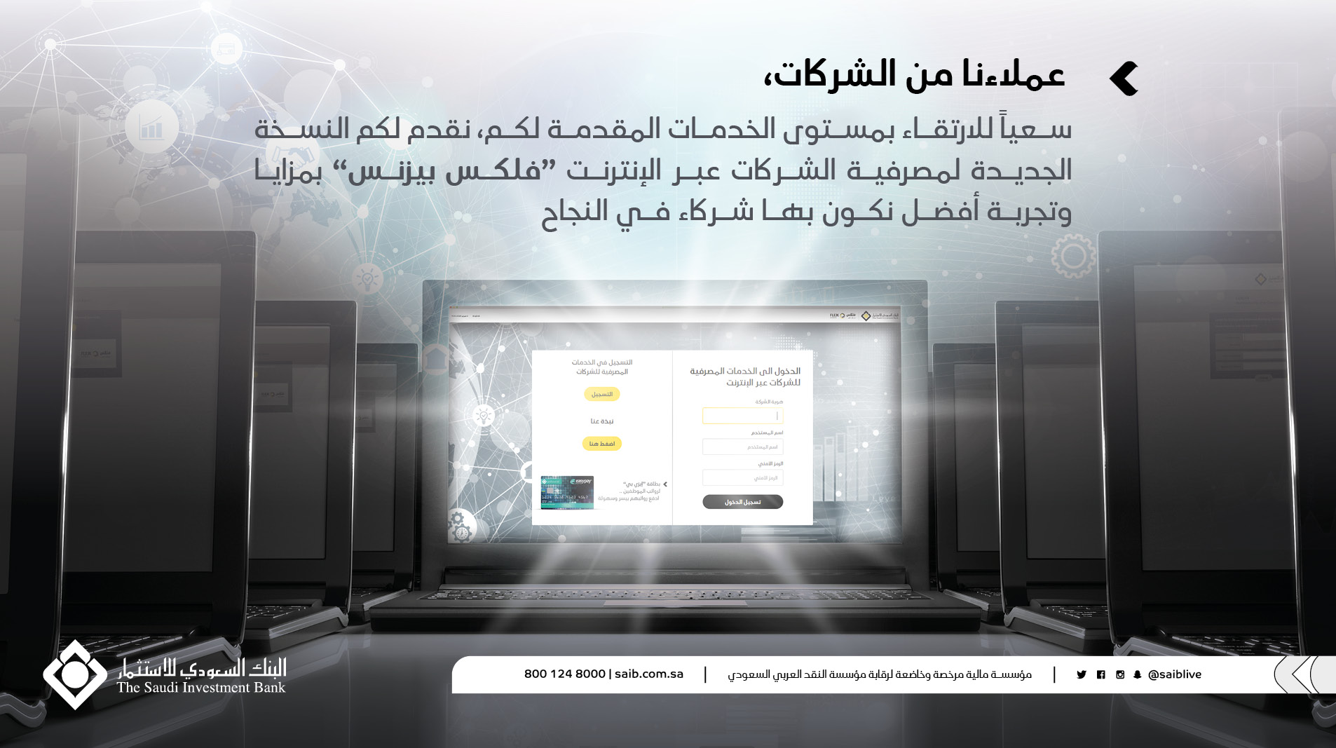 البنك السعودي للاستثمار On Twitter الآن يمكنكم تسجيل الدخول إلى النسخة الجديدة لمصرفية الشركات عبر الإنترنت فلكس بيزنس والاستمتاع بمزايا وتجربة أفضل Https T Co Ac9o4pvwpz Https T Co Mrlcptjcvb