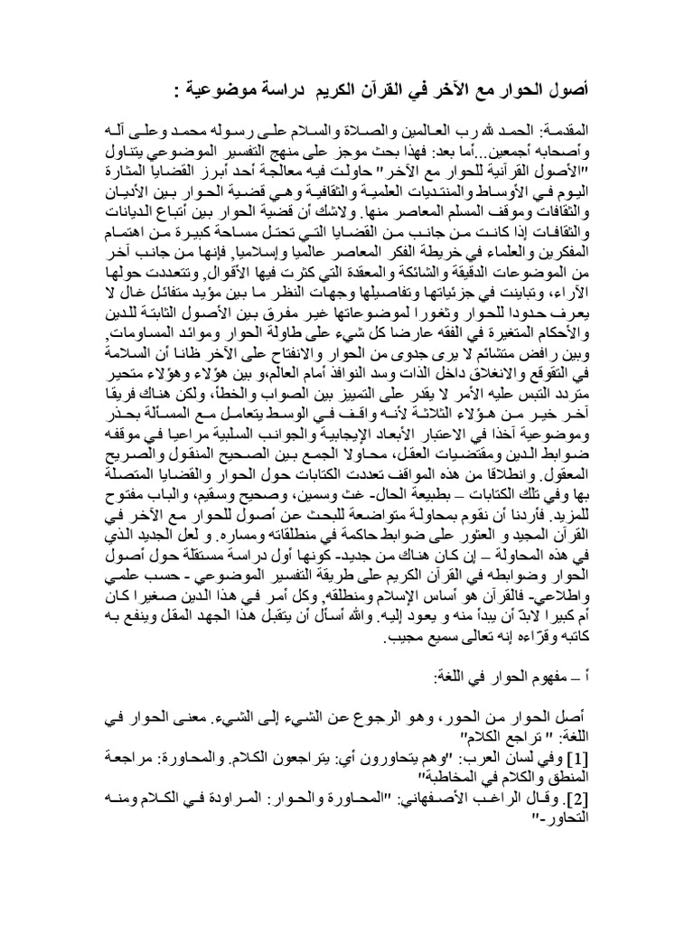 أصول الحوار مع الآخر في القرآن الكريم دراسة موضوعية Pdf