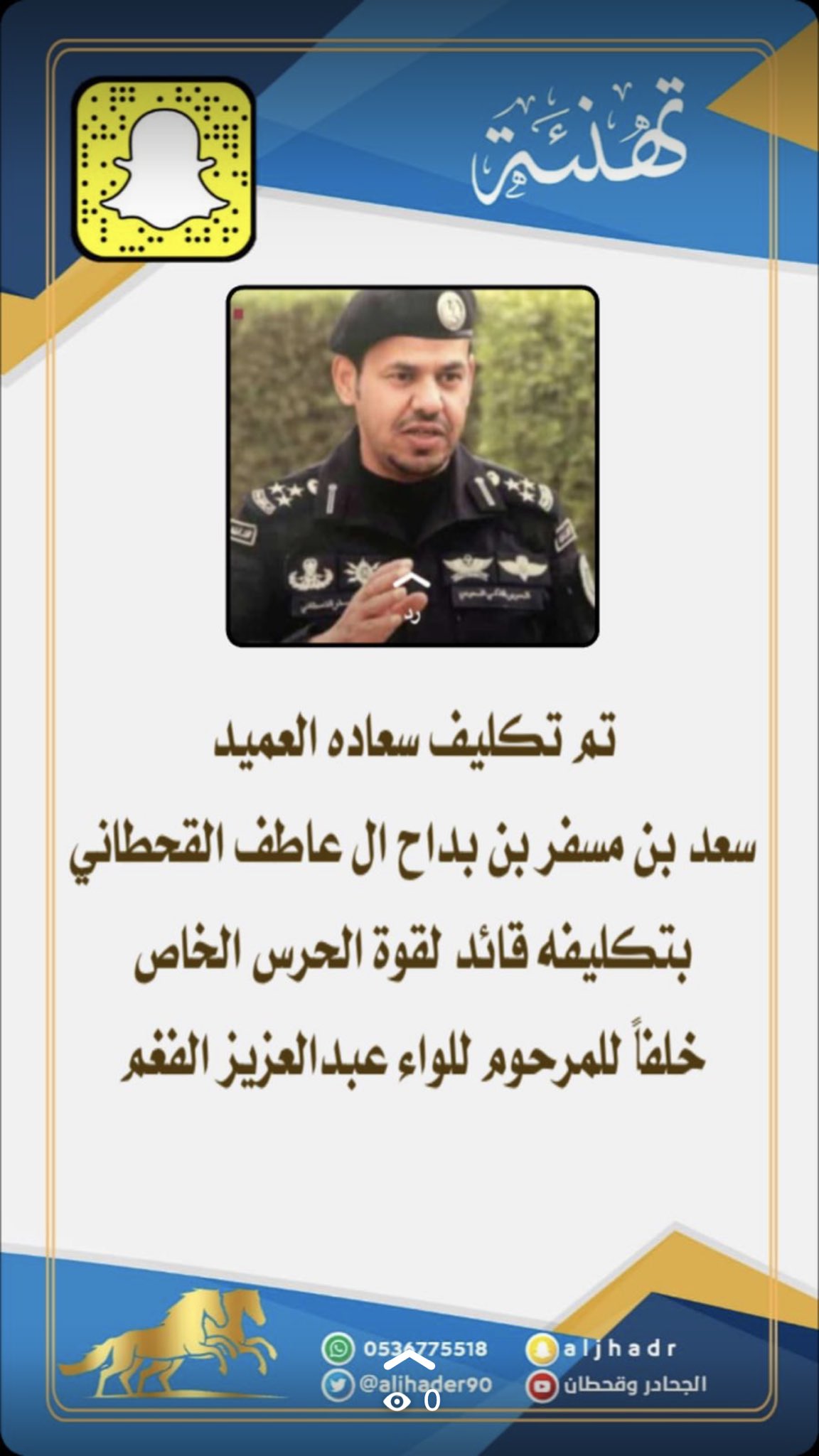 ساحات القويعية On Twitter تكليف العميد سعد بن مسفر آل عاطف القحطاني بمهام قائد قوة الحرس الخاص بديلا عن اللواء عبدالعزيز بداح الفغم من تاريخ 30 محرم 1441هـ نبارك له بهذه المناسبة