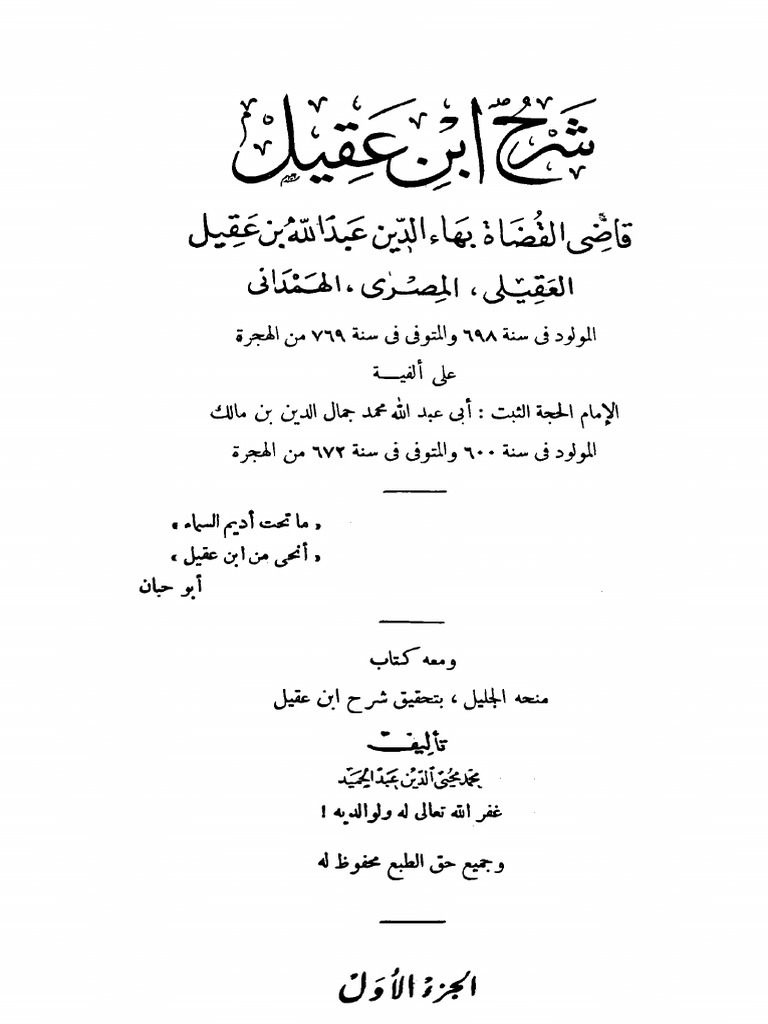 Islamic Jurisprudence تسهيل شرح ابن عقيل في النحو بهاء الدين عبد الله بن عقيل