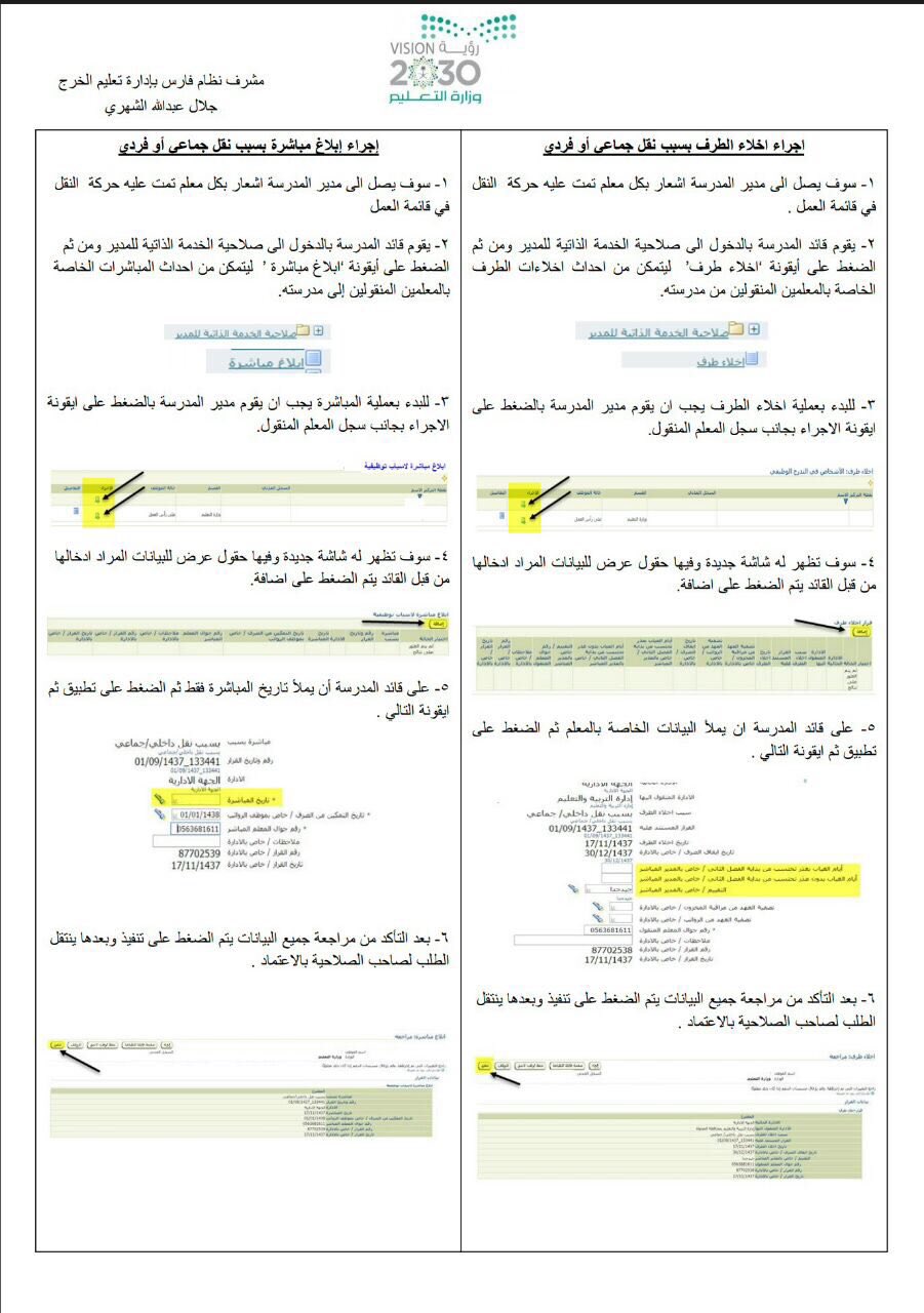 محمد الزارع Ar Twitter شرح طريقة إخلاء الطرف للمعلمين المنقولين في نظام فارس الخدمة الذاتية الدخول لصلاحية الخدمة الذاتية للقائد اختيار نقل المعلمين طلب اختيار إخلاء الطرف اختيار الموظف إضافة تعبئة