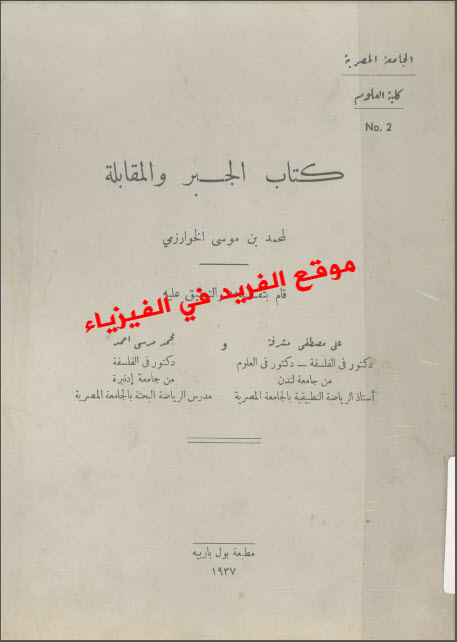 مدونة الثقافة والمعرفة الكتاب المختصر في حساب الجبر والمقابلة