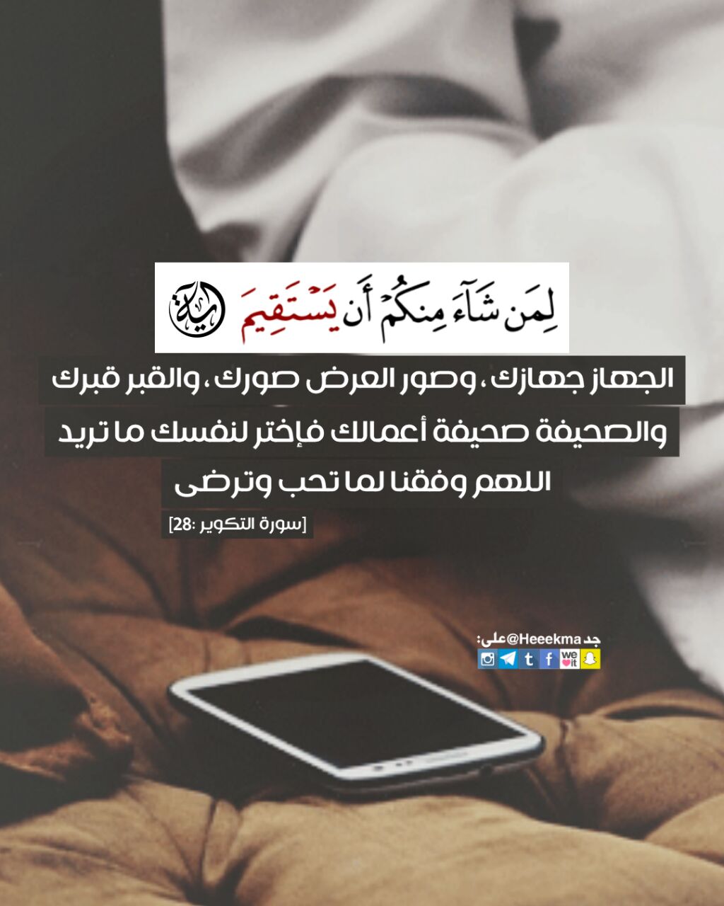 آية وحكمة على تويتر لمن شاء منكم أن يستقيم الجهاز جهازك وصور العرض صورك والقبر قبرك والصحيفة صحيفة أعمالك فإختر لنفسك ما تريد اللهم وفقنا لما تحب وترضى Https T Co 9msvbjods8